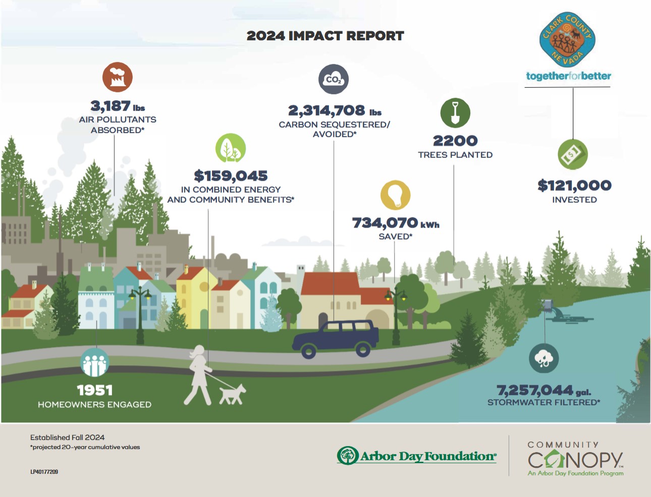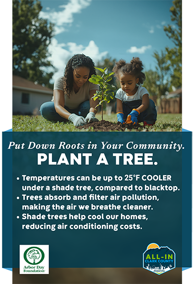 We’re building an “urban forest” in Clark County to combat the urban heat island effect. And we’re doing it with your help. Since fall 2024, we’ve given away 4,500 trees to people in Clark County to plant trees on their property.